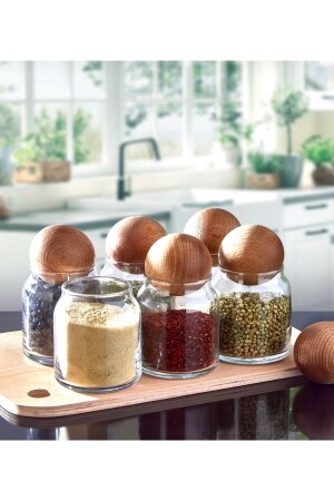 جرة من الـ 6 قطع مع غطاء كرة من البامبو و مجموعة العطور حاوية تخزين العشاء 01