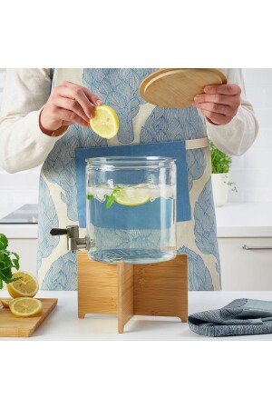 جرة MNZ-365+ مع نل، زجاجي-بامبو، 4 lt mny1292
