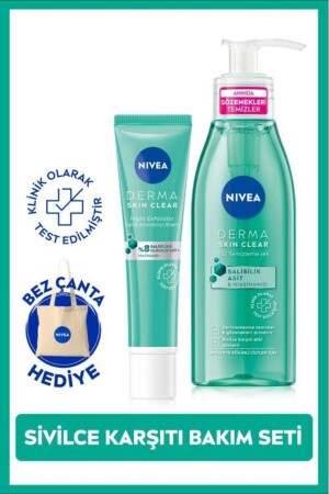 جيل تنظيف الوجه ضد الحمى من نوع MNZ- Derma Skin Clear Gel 150ml و كريم ليلي 40ml، حقيبة ملابس هدية SET. NVE. 894