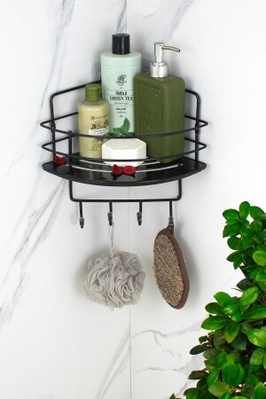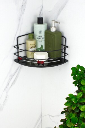 حاملة شامبو بالأسلاك السوداء من نوع MNZ لا تتصدأ مع رف ملصق على رف الحمام