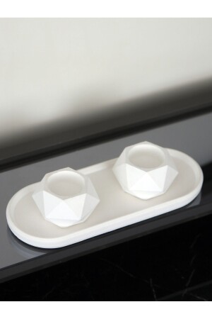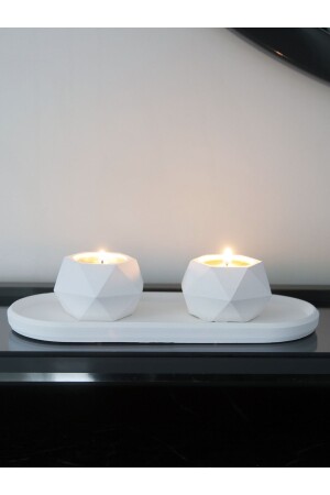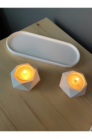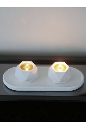 حامل شمعة من الخرسانة المضيئة من الجيومتريات MNZ - مجموعة هدية تزيينية مع لوحة بيضة بيض