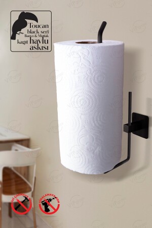 حامل منشفة من ورق MNZ - حامل منشفة - تصميم ملصق - معلق حمام - حامل منشفة ملصق / أسود