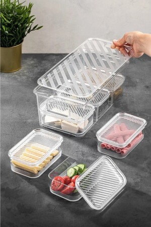 مكونات المنتج: 6 حاويات تخزين مستطيلة مع الغطاءات، وحاوية تخزين كبيرة مع اليدين والغطاءات ستضيف الروعة إلى