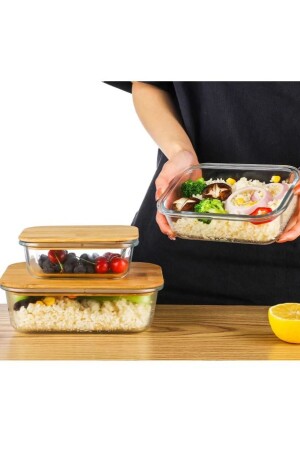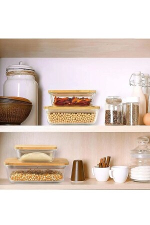 (MNZ-Rossel Premium Bamboo Covered) حاوية تخزين كأس زجاجية مستطيلة 4 قطع (370-650-1000-1500 مل) حاوية تخز