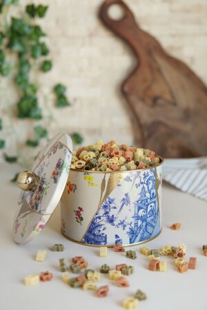 حاوية تخزين الطعام ذات النمط من المعدن. لديها سطح ذات نسيج يضيف إلى الأسلوب، مع قبضة الزر لسهولة على وإيقاف. مثالية لتخز