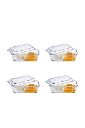 حاوية تخزين MNZ-Paşabahçe مع أقسام، صبغة، عسل، وعاء الإفطار يتكون المنتج من 4 قطع و 8 قطع. حجم: 480 سم.