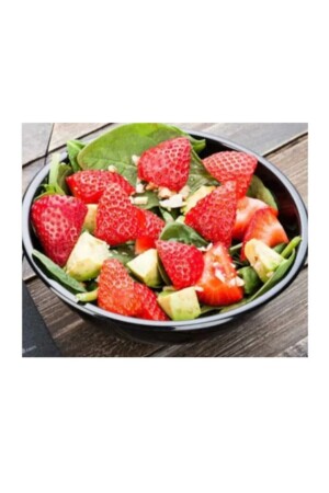 MNZ-إنه حاوية سلطة / وجبة / ووفل ملعقة ذات شكل مستديرة ، قاعدة سوداء ، غطاء شفافة و حجم داخلي 750 سم. يبلغ