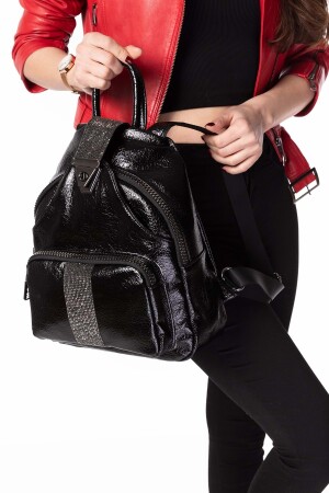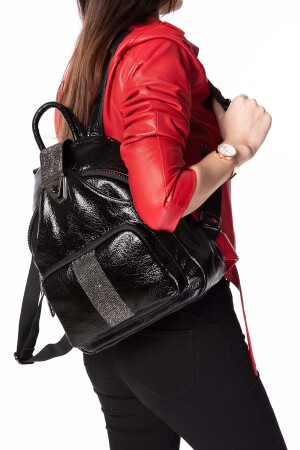 حجر النساء من MNZ التفاصيل اليومية حقيبة ظهر Ald. 1250 - جلد براءة اختراع سوداء