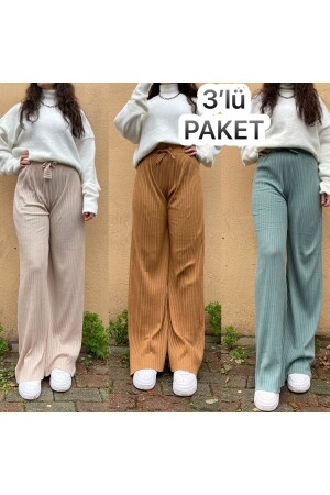 Düz Paça Pijama Altı Dokulu Beli Bağcıklı Modal Karışımlı