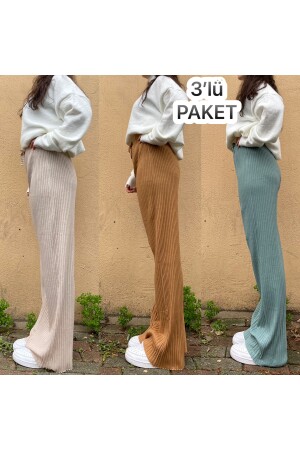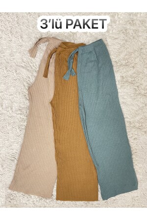 حزمة من 3 نساء من الخيطات المشرقة الخشية القطن بيجاما أسفل البدلة البيجا الخردل الخضراء BM.
