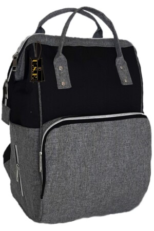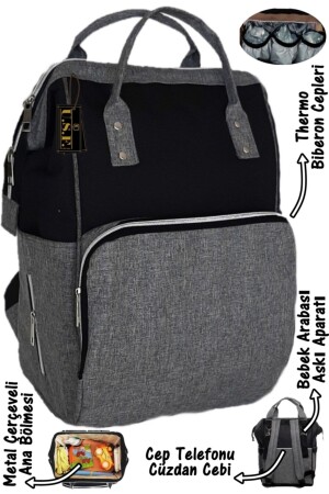 Biberon Termoslu Sıvı Geçirmez Puset Askı Aparatlı Siyah Füme Çizgili Anne Bebek Bakım Sırt Çantası