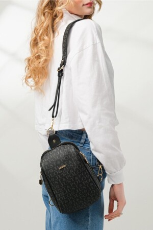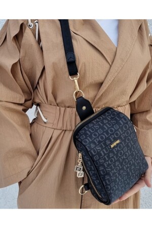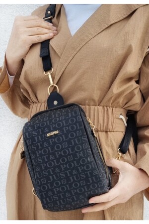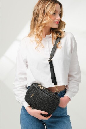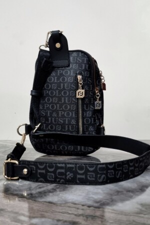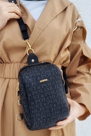 Kadın Siyah Çapraz Ayarlı Askılı Klinkır Kumaş Postacı Omuz Çantası