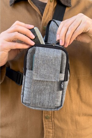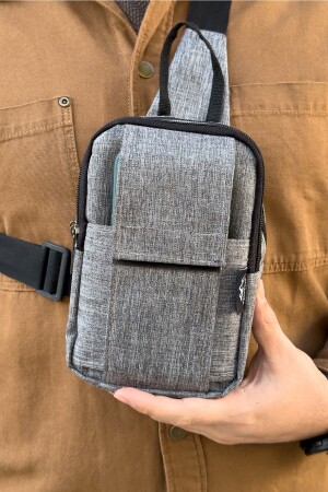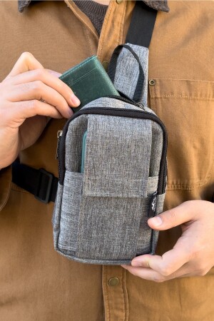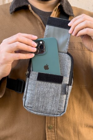 Unisex Siyah Keten Kumaş Telefon Bölmeli Çapraz Askılı Omuz Ve Bel Çantası Günlük Çanta