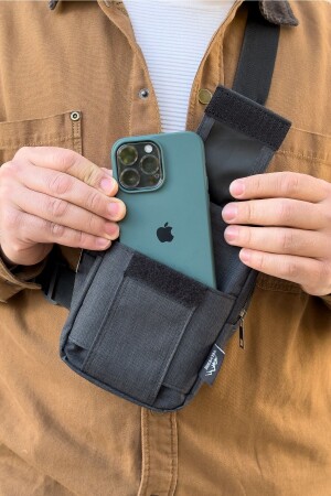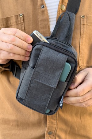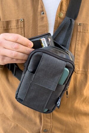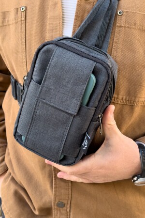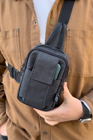 Unisex Siyah Keten Kumaş Telefon Bölmeli Çapraz Askılı Omuz Ve Bel Çantası Günlük Çanta