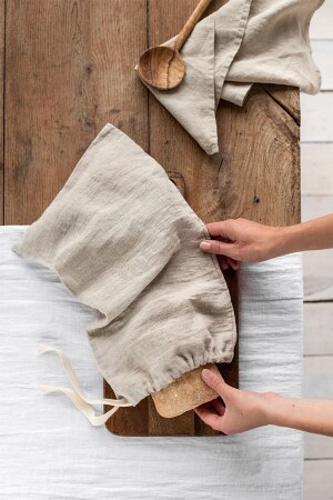 حقيبة خبز من اللن الخفيفة ستكون مساعدة كبيرة وستضيف جوًا أنيقًا إلى مطبخك. يساعد الكتان على الاحتفاظ بالرطوبة والخبز