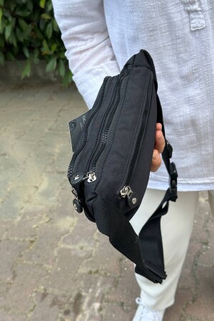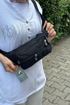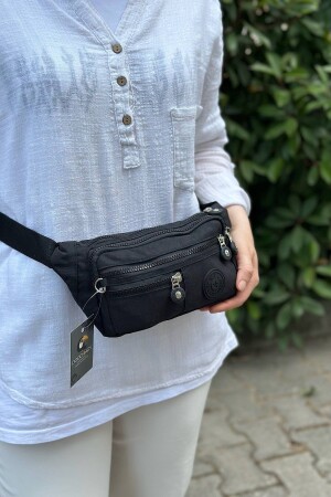 Unisex Siyah Keten Kumaş Telefon Bölmeli Çapraz Askılı Omuz Ve Bel Çantası Günlük Çanta