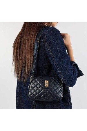 Kadın Siyah Çapraz Ayarlı Askılı Klinkır Kumaş Postacı Omuz Çantası