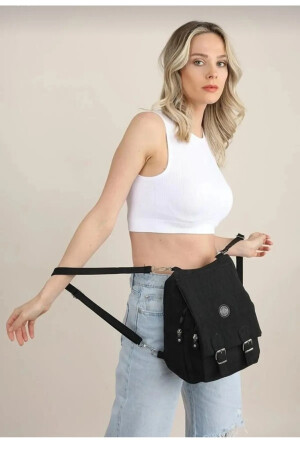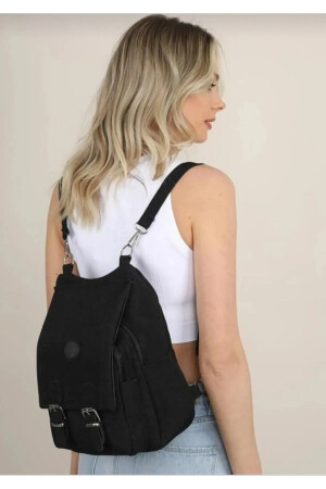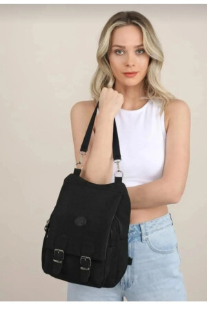 حقيبة اليد والحقيبة الظهر للمرأة من الأقمشة السوداء