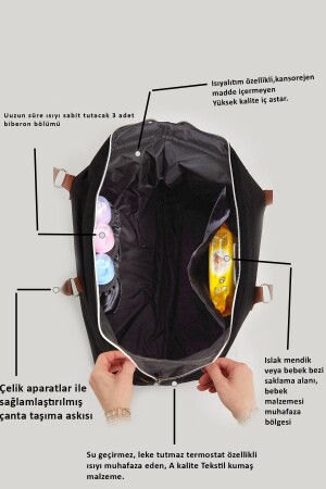 Biberon Termoslu Sıvı Geçirmez Puset Askı Aparatlı Siyah Füme Çizgili Anne Bebek Bakım Sırt Çantası