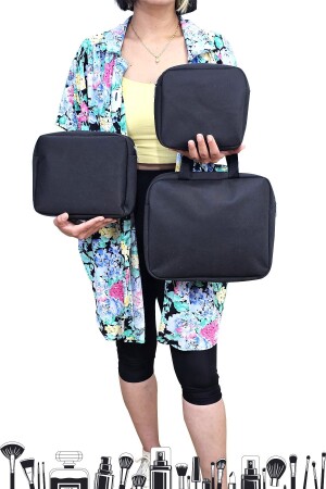 تُرسل حقائب مكياج 3 قطع في 3 مجموعات. مصنوعة من أ tela مقاومة للماء. 3. فم الحقيبة يحتوي على مقبض. حجم كبير: عرض: 30 سم -