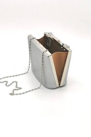 Kadın Yuvarlak Gümüş Taşlı Bilezik Aksesuarlı Abiye Clutch Portföy Çantası
