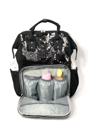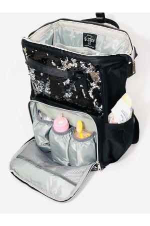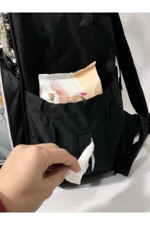Biberon Termoslu Sıvı Geçirmez Puset Askı Aparatlı Siyah Füme Çizgili Anne Bebek Bakım Sırt Çantası