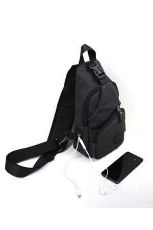 Unisex Siyah Keten Kumaş Telefon Bölmeli Çapraz Askılı Omuz Ve Bel Çantası Günlük Çanta