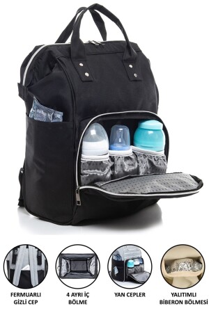 Biberon Termoslu Sıvı Geçirmez Puset Askı Aparatlı Siyah Füme Çizgili Anne Bebek Bakım Sırt Çantası