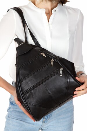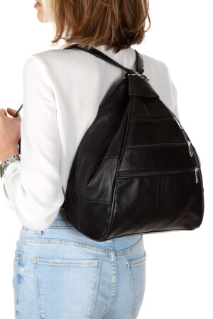 حقيبة ظهر من الجلد الحقيقي للمرأة من طراز MNZ-Fashion ، حقيبة يد وكتف سوداء (37x23x30) 98167