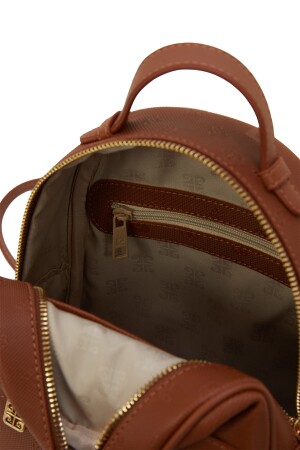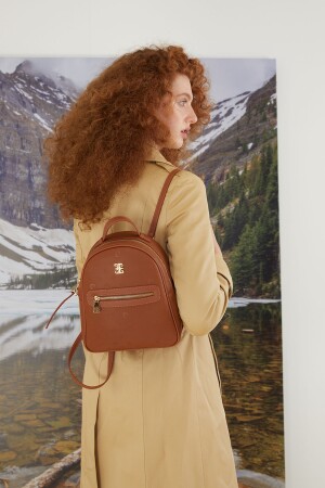 Hakiki Deri Kadın Sırt Ve Omuz Çantası - Maymun Model Çok Bölmeli - Koyu Ala