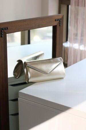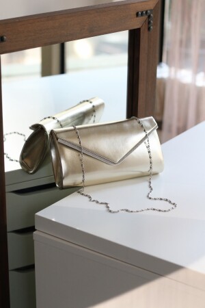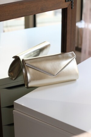 Simli Altın Renk Taşlı Işlemeli Kadın Abiye Portföy Clutch Çanta Indirimli