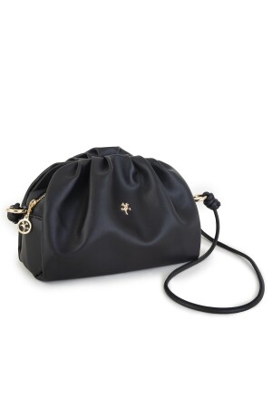 Kadın Siyah Çapraz Ayarlı Askılı Klinkır Kumaş Postacı Omuz Çantası