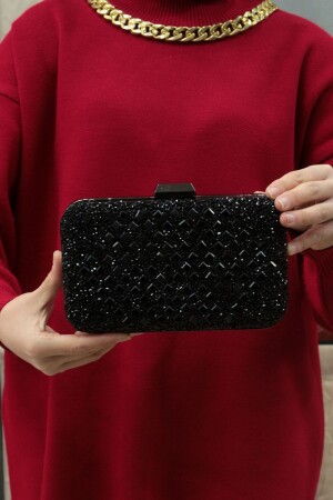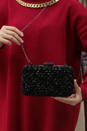 Siyah Kadın Taşlı Ve Sade Özel Zincir Ve Kolçaklı Abiye Çanta Bg1175-310-0011