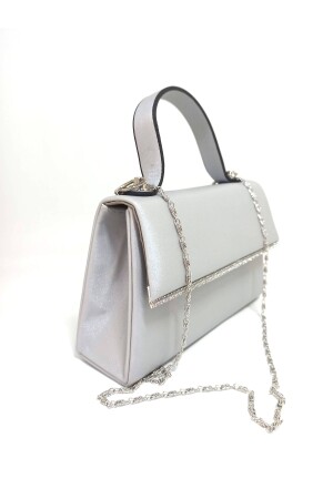 Kadın Yuvarlak Gümüş Taşlı Bilezik Aksesuarlı Abiye Clutch Portföy Çantası