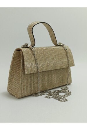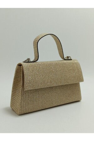 Simli Altın Renk Taşlı Işlemeli Kadın Abiye Portföy Clutch Çanta Indirimli