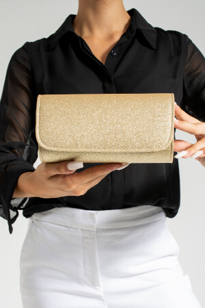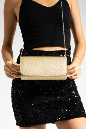 Simli Altın Renk Taşlı Işlemeli Kadın Abiye Portföy Clutch Çanta Indirimli