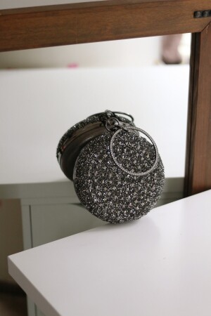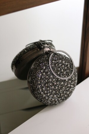 Kadın Yuvarlak Gümüş Taşlı Bilezik Aksesuarlı Abiye Clutch Portföy Çantası