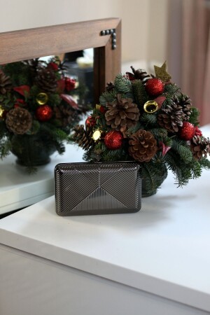 Kadın Yuvarlak Gümüş Taşlı Bilezik Aksesuarlı Abiye Clutch Portföy Çantası