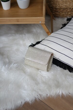 Simli Altın Renk Taşlı Işlemeli Kadın Abiye Portföy Clutch Çanta Indirimli