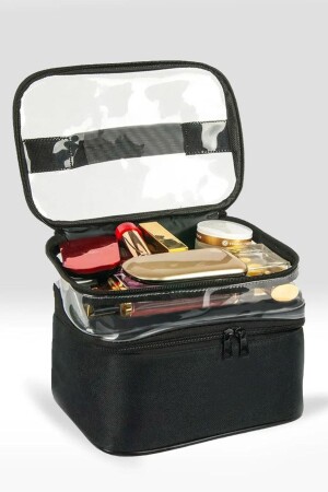 حقيبة مكياج MNZ حقيبة الرعاية السفرية سوداء غرفة شفافة - 2 مكونات منظمة تجميل وظيفية jtmkyj