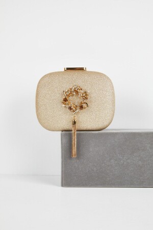 حقيبة ملابس مساء من لون من ذهب MNZ مع تفاصيل زينة