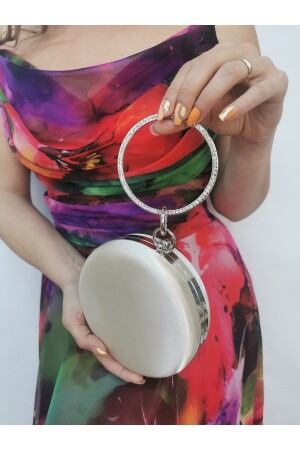 Kadın Yuvarlak Gümüş Taşlı Bilezik Aksesuarlı Abiye Clutch Portföy Çantası