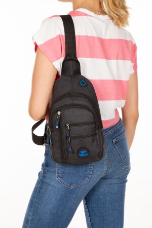 Unisex Siyah Keten Kumaş Telefon Bölmeli Çapraz Askılı Omuz Ve Bel Çantası Günlük Çanta