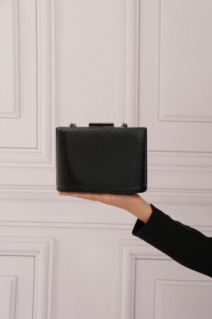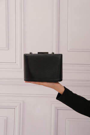 Kadın Siyah Deri Mini Kutu Omuz Abiye Çantası