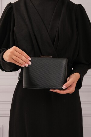 Siyah Kadın Taşlı Ve Sade Özel Zincir Ve Kolçaklı Abiye Çanta Bg1175-310-0011