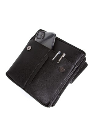 حقيبة من اليد والكتف من رجل من MNZ-Strap Hand and Shoulder Bag كيس الرسول من الجلد الأسود (الربع:20xالطول:23 سم) (القياس الك