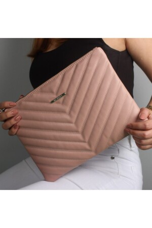 Kadın Trend Bej Deri Clutch Portföy Çanta