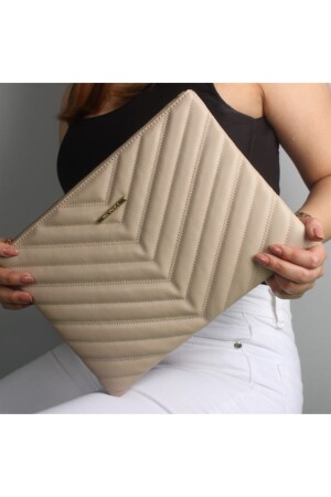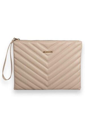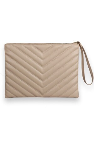 Kadın Trend Bej Deri Clutch Portföy Çanta