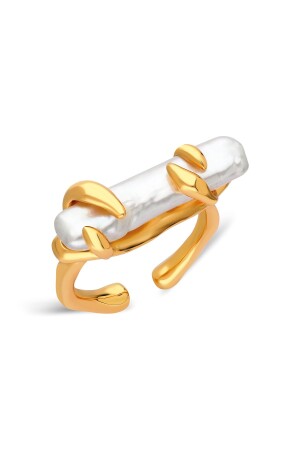 Beyaz Gerçek Inci Yüzük Kalp Şeklinde Pırlantalarla Süslenmiş Yüzüğün Gövdesi Rodyum(08)