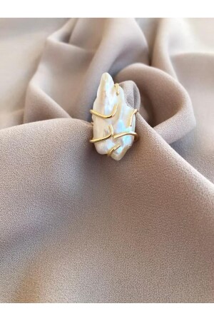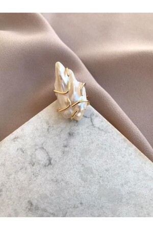 حلقة باروك كبيرة من MNZ - حلقة باروك قفص - حلقة بلؤلؤ باروك الطبيعية - حلقة بلؤلؤ ذهبية